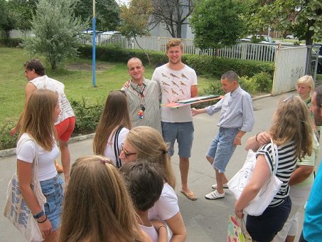 POSETA UDRUŽENJA "MARA" IZ HOLANDIJE on 04 avgust 2016. Grupa mladih ljudi iz Holandije nam je donirala školske stolice i pelene, za potrebe pojedinih korisnika Doma.Nasmejani i vedri su se družili sa decom, koju su svojim prisustvom obradovali.